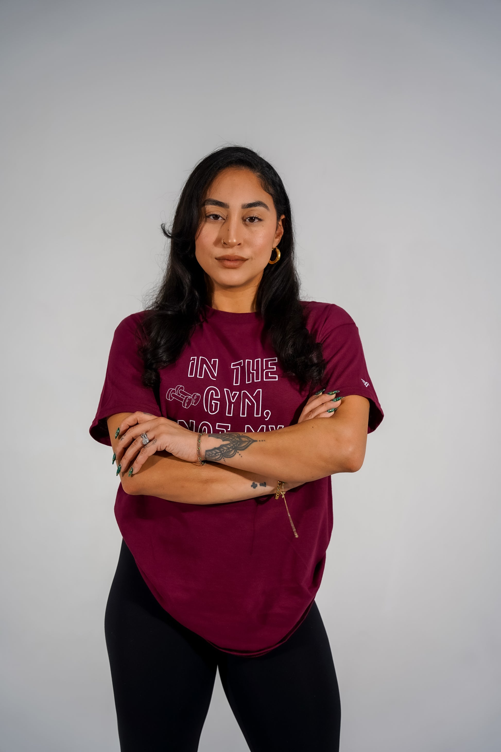No distractions, just goals. The IN THE GYM TEE is for the women who are too busy building their dream bodies and dream lives to entertain anything less than greatness. Whether you're layering it over your cutest gym set or rocking it for ultimate comfort, this tee lets them know: your energy is reserved for gains, not games.