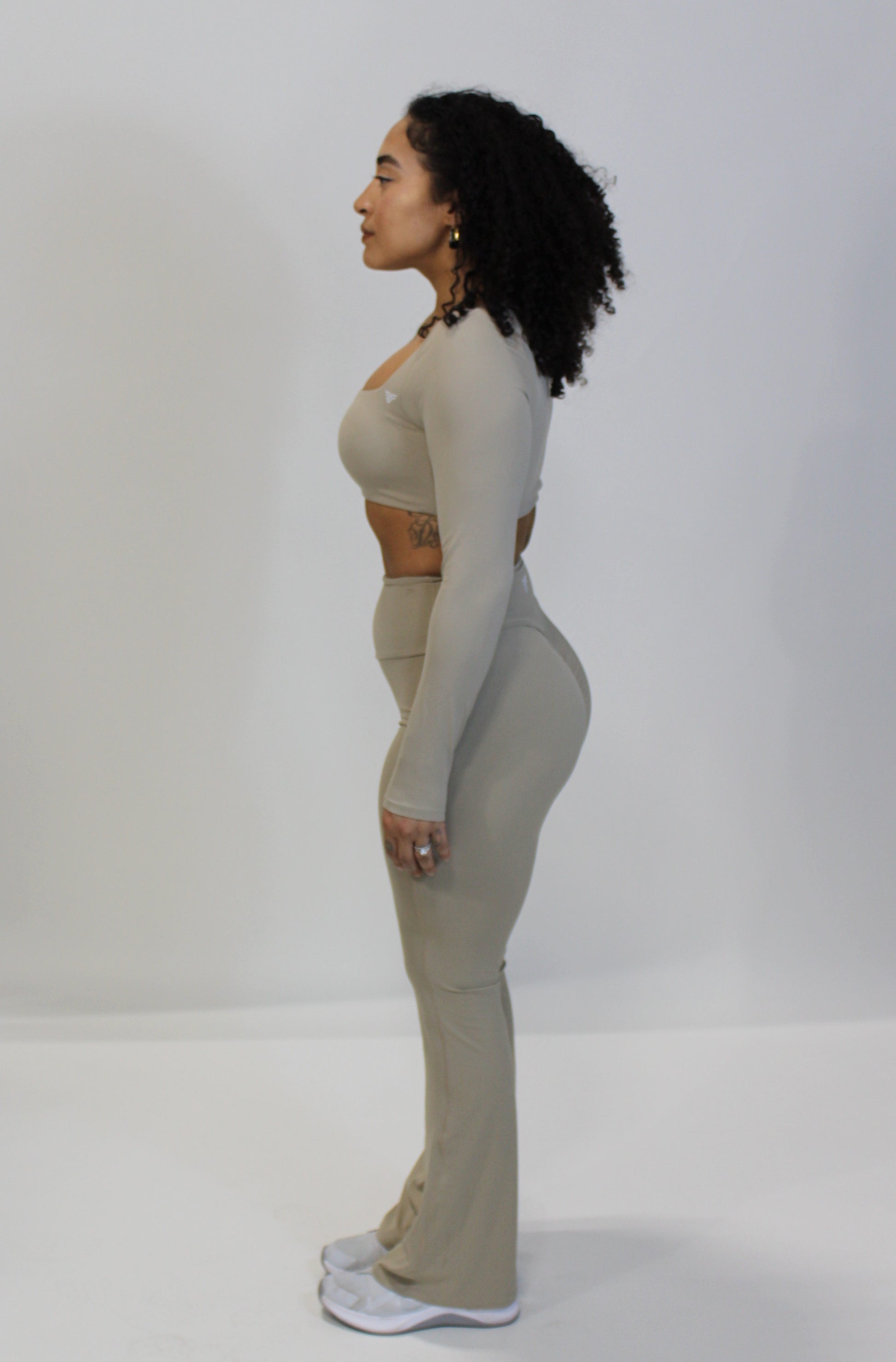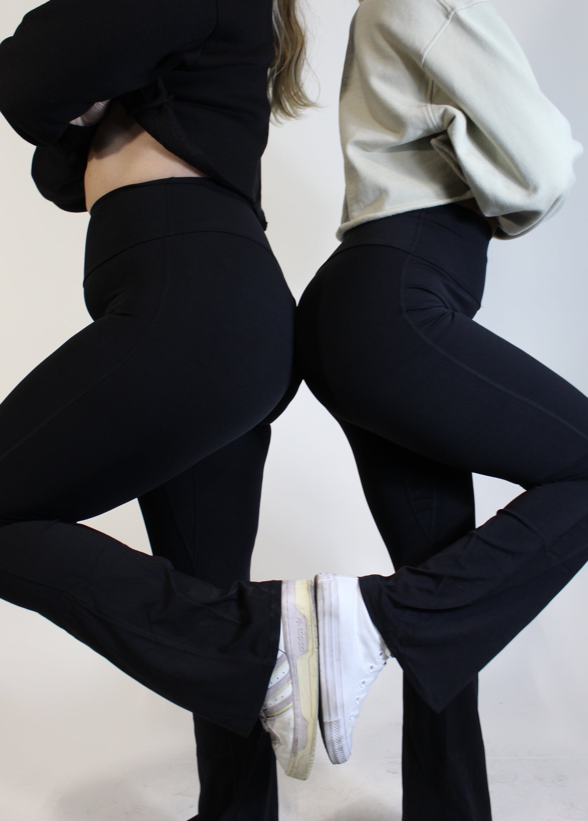 MUV bellbottom leggings are the perfect everyday leggings, working out, pilates, yoga classes, daytime dates and all! These are going to be your new favorite leggings, full waistline coverage, scrunch butt detail to accentuate the curves and the cutest flare at seam. These leggings are very true to size with GREAT stretch. Size small compared at 0/5 - Size XL compared to 14/16.